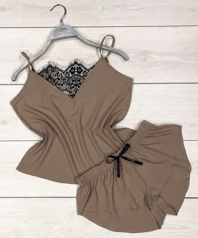 Модель шорт з низькою талією на зручній гумці, спереду декор у вигляді чорною атласною стрічки. яка зав'язується на елегантний бант.