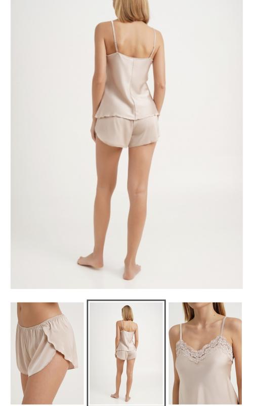 Класика домашнього стилю - піжама зі шовку. Тканина легка і неймовірно зручна, виглядає жіночно і елегантно. Майку з тонким бретелями, які регулюються прикрашає шикарне мереживо на декольте. Тканина по краях шортиків перекриває одна одну і робить їх стильними та водночас зручними під час сну. В піжамі все ідеально: лаконічний дизайн, ніжне мереживо і приємна до тіла тканина. Красива і витончена модель, яка підкреслить переваги Вашої фігури. При правильному догляді матеріал не деформується і не линяє.
