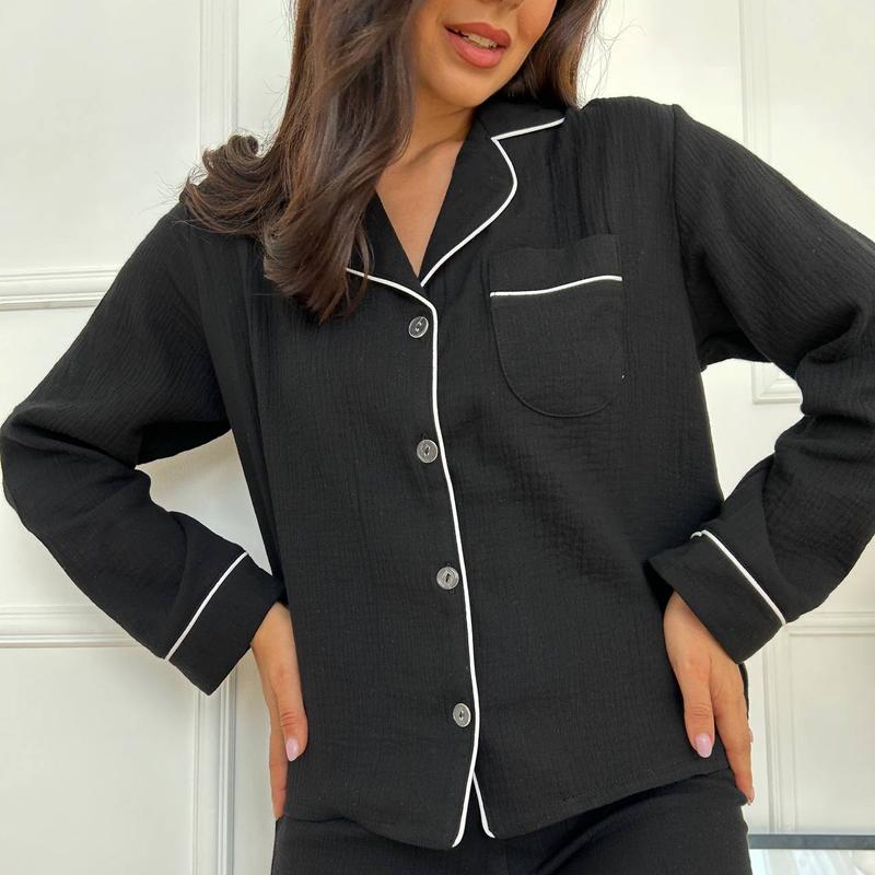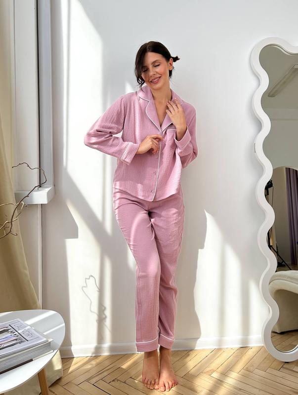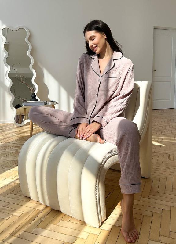 Піжамка з мусліну рубашка і штани, ідеальна дихаюча тканина зі 100% бавовни 👌Розміри XS, S, M, L, XL Кольори: м’ята, бузок, чорний, моккоУсі фото вживу, якість супер 😎 Є наложений платіж по передоплаті 150 грн