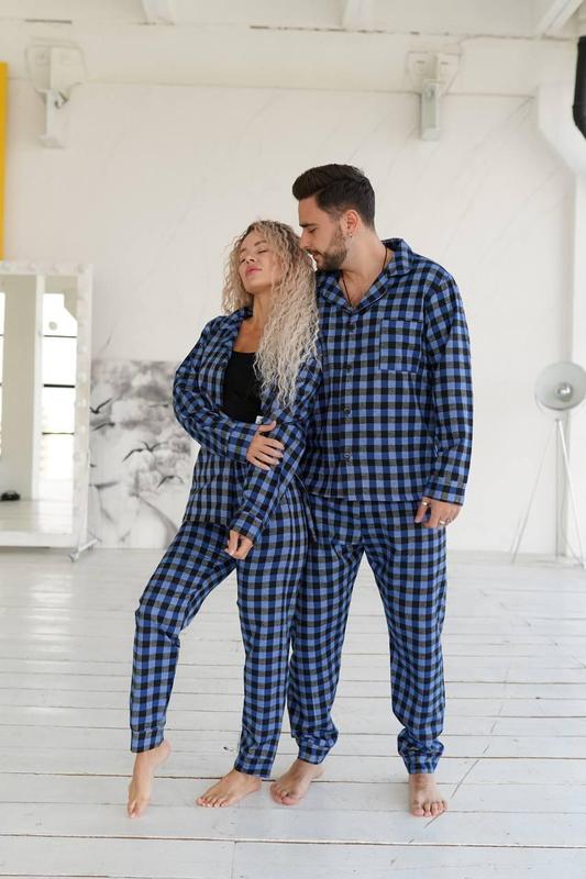 Парні піжами фланелеві теплі комплімент сорочка та штани картата сині (bon)