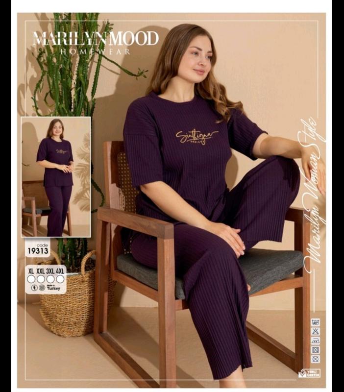 Жіноча піжама рубчик футболка штани, домашній костюм, бавовна, великі розміри, туреччина