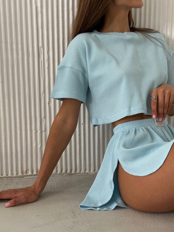 Арт 1512-175 Новинка Піжама🤩 Розмір: 42-44, 46-48 Колір: м'ята, хакі, фрез, білий, чорний, блакитний, малина Тканина: рубчик Туреччина Ціна 650 грн Комплект футболка + шорти з розрізом - найкомфортніший і найстильніший комплект, який Ви можете носити не тільки вдома, але і у відпустці на пляж❤️🔥