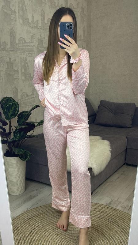 🕊Жіноча піжама Victorias Secret🕊 ➖код 1008 ➖Розмір: S, M, L, XL ➖Склад: 95%сатин, 5%лайкра ➖Виробник: Туреччина ➖Сорочка+штани ➖+резинка для волосся