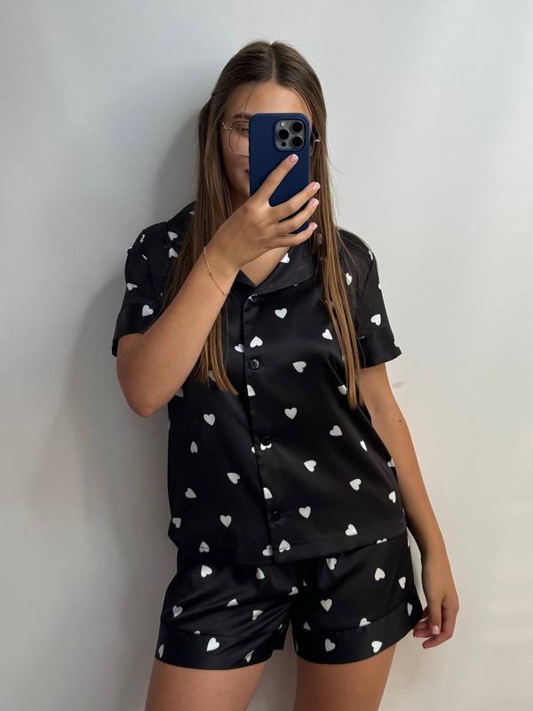 Піжама комплект сатин шовк шорти і сорочка принт