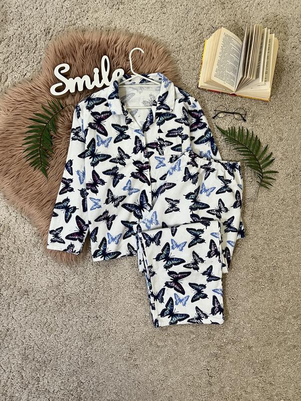 Для більш точного визначення, виміри, порівнюйте із вимірами подібної речі, а не зі своїми обсягами. Домашній піжамний комплект у принт метелики. Складається із сорочки з довгим рукавом та штанів. Тканина тонка, приємна, м'яка. Не просвічується, не тягнеться. Талія на резинці. Стан: дуже хороший. Дефекти: немає. Розмір на бирці: 16/18 (Виміри виробу вимірюються у напівобхваті, а не від шва до шва!) Виміри виробу: Сорочка: Плечі 45 см., Рукав 55 см., Напівобхват грудей 64 см., Напівобхват низ 64 см., Довжина по спині 64 см. , Довжина від плеча 64 см. Штани: Напівобхват талії 44-64 см., Напівобхват стегон 71 см., Посадка спереду 35 см., Посадка ззаду 41 см., Довжина по зовнішньому шву 102 см., довжина по внутрішньому шву 73 см., Напівобхват штанини вверху 40 см., Напівобхват штанини внизу 26 см. Склад тканини: 100% бавовна. Країна виробник: Бангладеш. Бренд: - Оплата і доставка: Оплата на картку монобанк. Бронювання на оплату тільки 24г. При змінах наміру купувати обов'язково повідомляйте! Доставка: На час введення воєнного стану уточнюйте чи можлива доставка до Вашого пункту. Актуальні новини можна уточнити на сайті перевізника та за номером телефону контакт-центрів. Не забудьте ПІДПИСАТИСЯ щоб бути в курси всіх новинок та розпродажів!