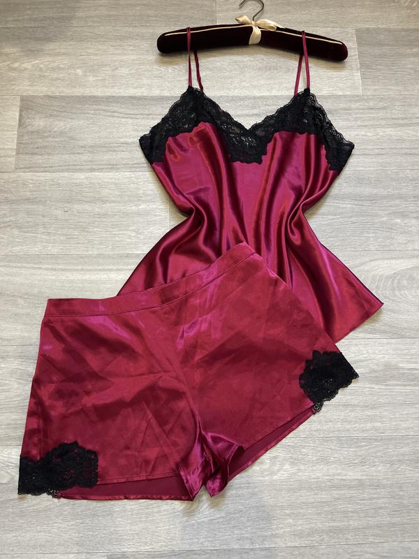 Атласна піжама жіноча майка шорти з мереживом великого розміру