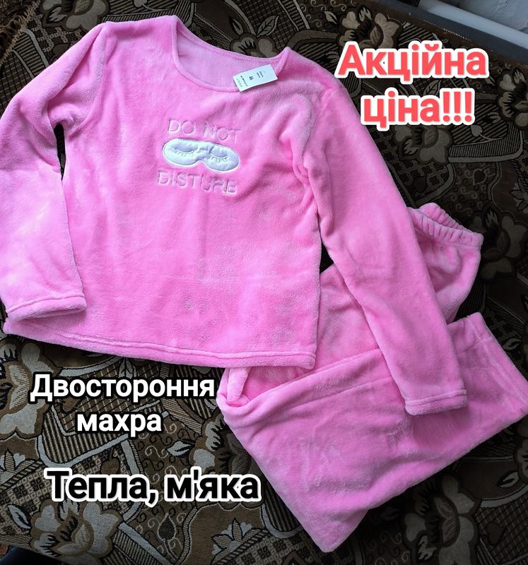 Акція 🔥 тепла рожева махрова піжама жіноча домашній костюм кофта і штани зимова м'яка дво...