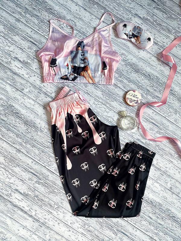 Шовкова піжама з принтом chanel
