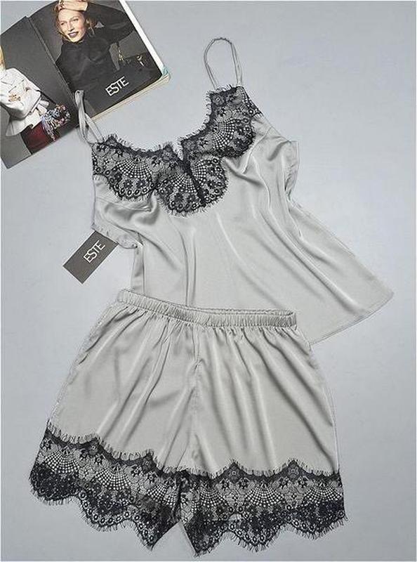 Чарівна біла піжамка з шовковими шортиками і мереживним топиком топом ліфом "маріон" 6377
