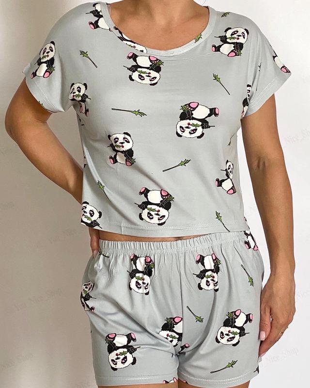 Арт. Q404514 🌸 Жіноча піжамка сіра в панд. У наборі шорти і футболка укороченого крою. ✅Розмір: XL ( про. стегон 103-108, про. талії 80-85, про. грудей 96-102) ✅Колір як на фото.