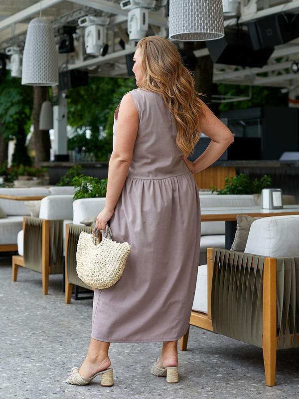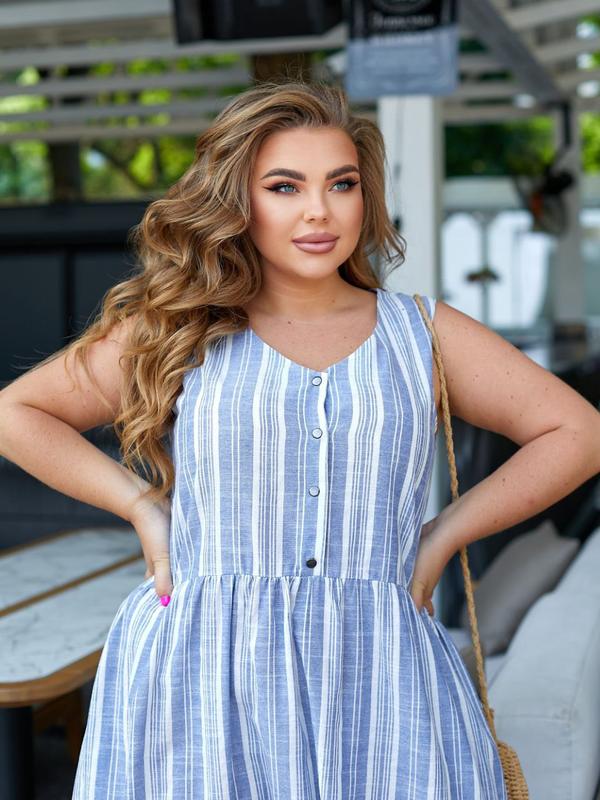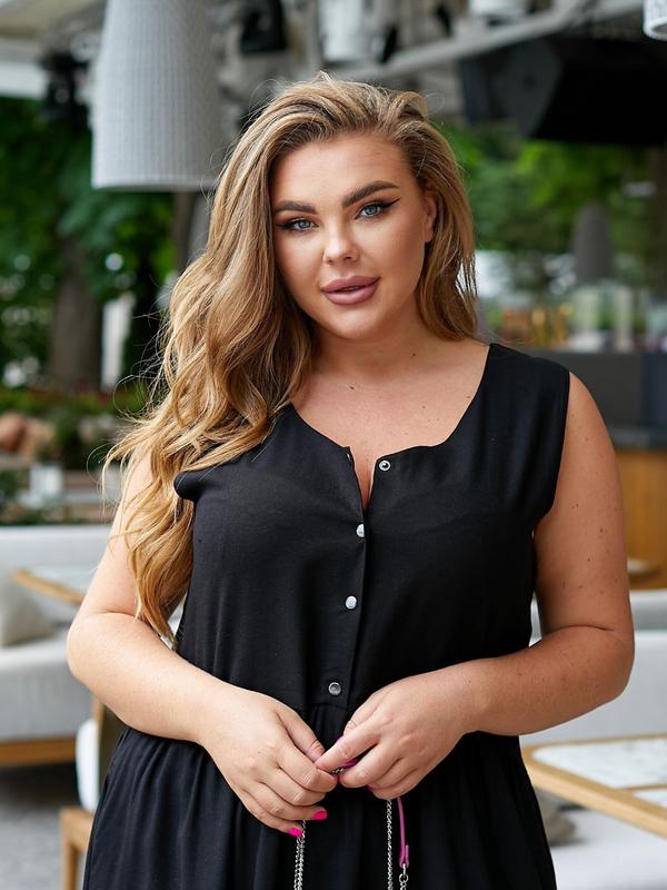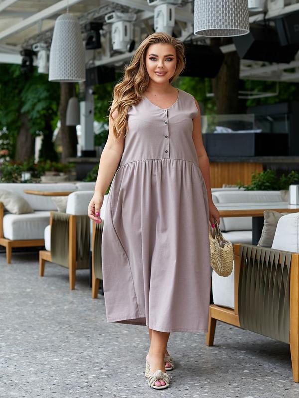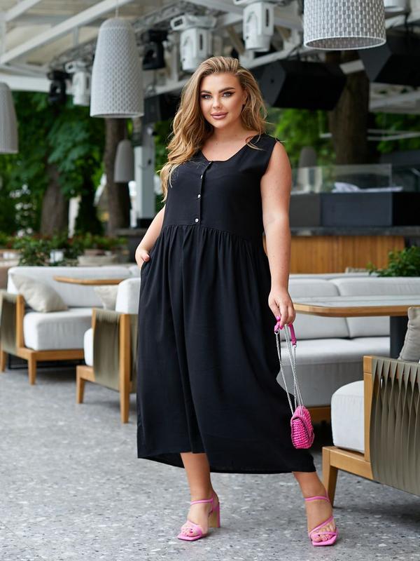 Легке, дихаюче плаття з ґудзиками на декольте. Довжина міді.