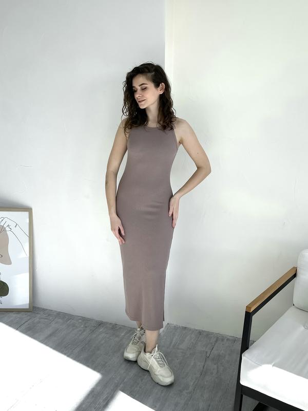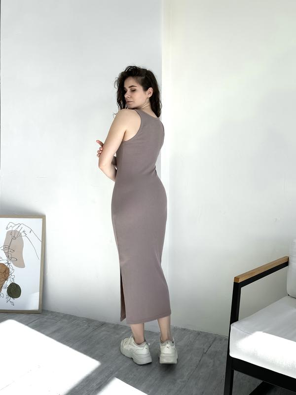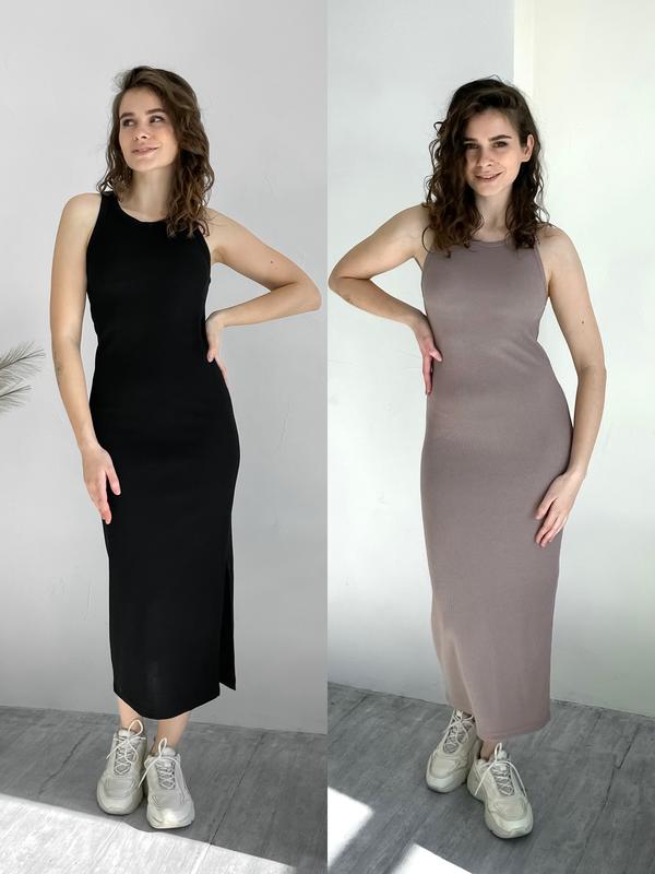 Сукня майка в рубчик з розрізом. Модель йде по фігурі. Еластина тканина гарно сідає. Власне виробництво-якісний пошив👍.