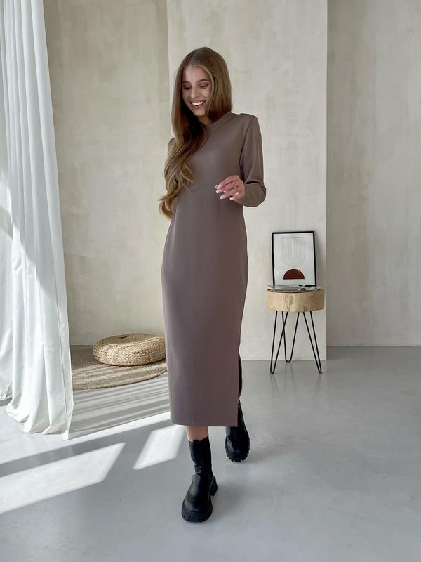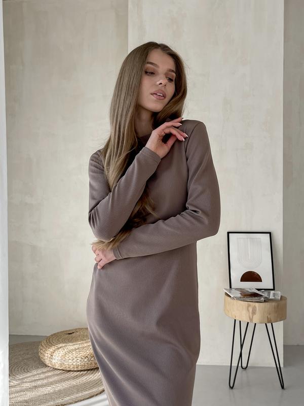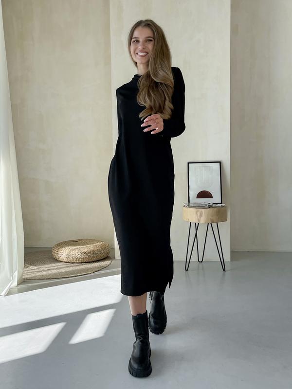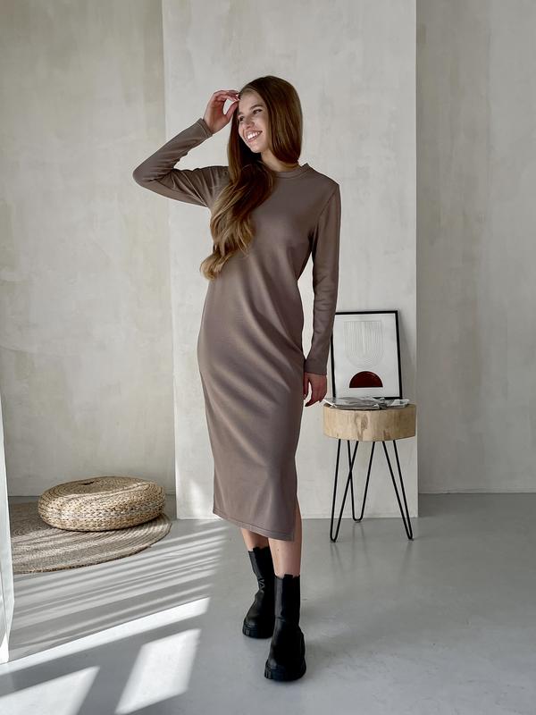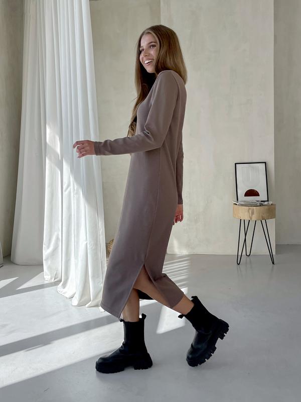 Вільна сукня рубчик на флісі з боковим розрізом . Ровний крой,не обтягує. Тканина приємна та гарно тягнеться.