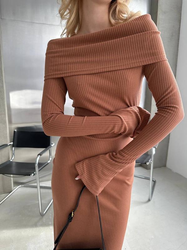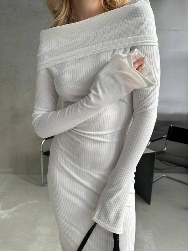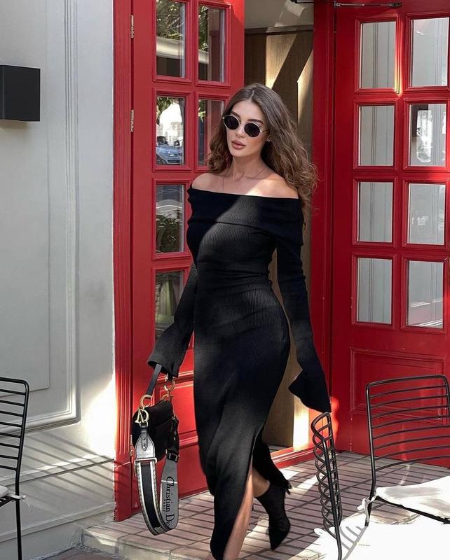 Стильна сукня з розрізами на рукавах та на нозі. Фасон сукні підкреслює фігуру, а відкриті плечі додають романтичності в образ.