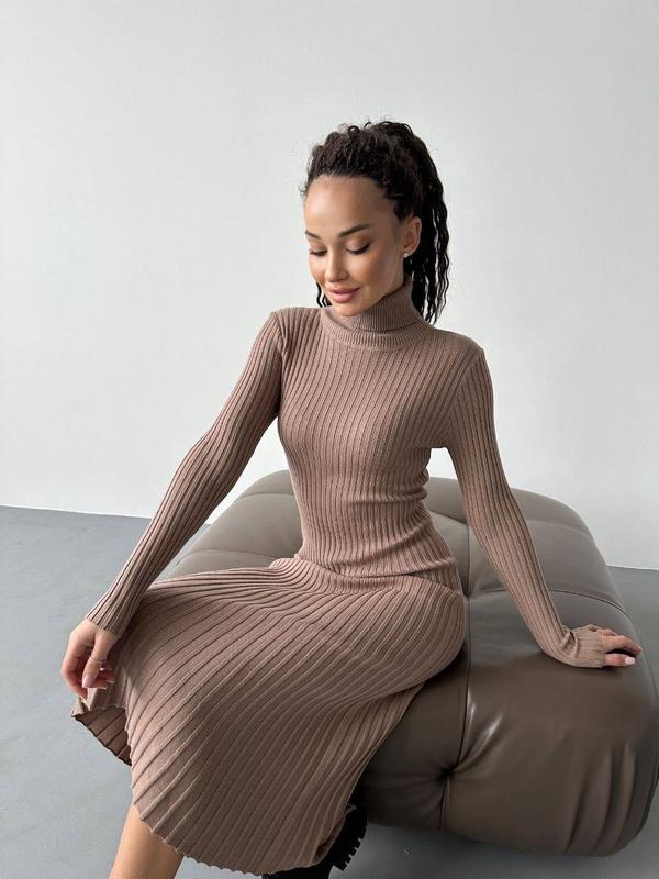 Якісна сукня пліссе довге плаття з горлом та довгими рукавами