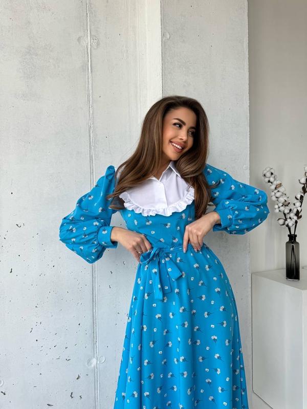 Романтична сукня в ніжних кольорах .Довжина міді .Застібується на кнопки .На талії резинка ,одягається під пояс .Сукня ,яка чарує і надає впевненість .Це те,що повинно бути в твоєму гардеробі .