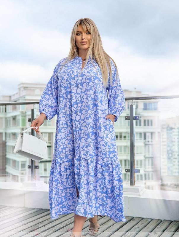 48-50 р-р: довжина плаття 129 см, довжина рукава від горловини 60 см, обхват рукава 50 см, ОГ — 118 см, ОТ — 124 см, ОС — 132 см.