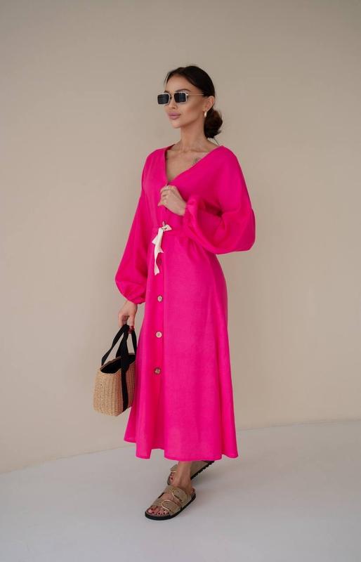 🥰📸Фото вживуЧарівна лляна сукня ▫️Модель : 244▫️Тканина: натуральний Льон▫️Розмір: 42-46 оверсайз▫️Колір: білий, синій, малиновий☝🏻Відмінної якості та пошиття.