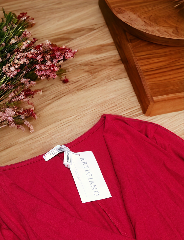 Зроблено в ІталіїРозмір вказаний 12НОГ 46 см тягнеться добре до 51 смНОТ 40-45 смНОС 50 см тягнеться дуже добре до 60 смДлина от плеча 110смДовжина рукава від плеча 42 смСклад віскоза й еластан