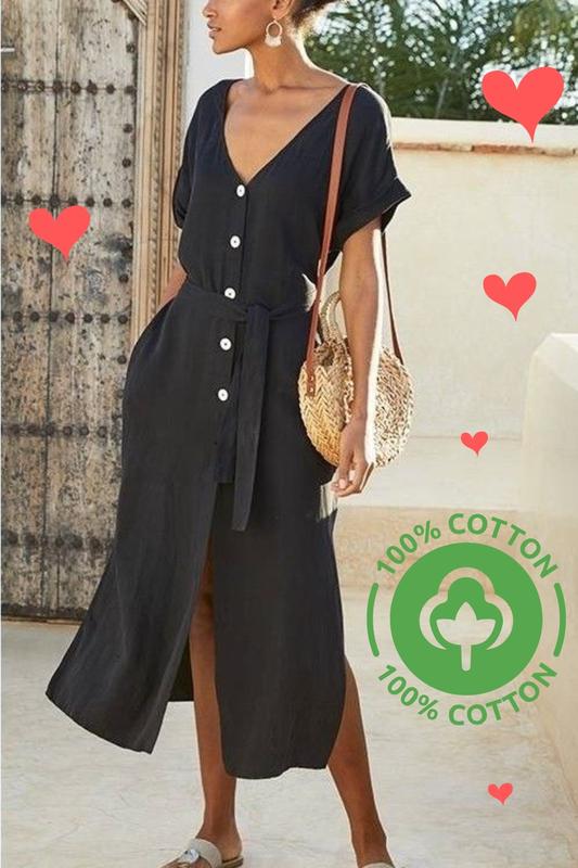 ❤ Суперкомфортне плаття-сорочка практичного темно-сірого кольору (мокрий асфальт) з контрастними дерев'яними гудзиками виглядає максимально круто і з відповідними аксесуарами буде доцільним на будь-які випадки життя! 🔥 Якісна щільна фактурна бавовна (плаття прекрасно тримає форму), розслаблений вигідний крій, який шикарно маскує всі недоліки фігури, зручні звабливі закруглені вирізи по низу виробу, без поясу (але запросто можна підкреслити талію красивим паском). Параметри (виміри без натяжіння тканини): ▫️Напівоб'єм грудей - 70 см ▫️Напівоб'єм стегон - 77 см ▫️Довжина виробу по переду - 125 см, спинка - 133 см ▫️Довжина рукава від плеча - 26 см ▫️ Лінія плечей - 49 см. Розтяжимість: відсутня. Склад - 100% коттон. Для кращого розуміння прикріпила фото цієї ж моделі сукні у теракотовому кольорі.