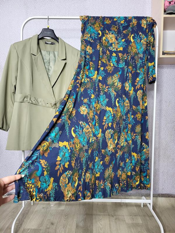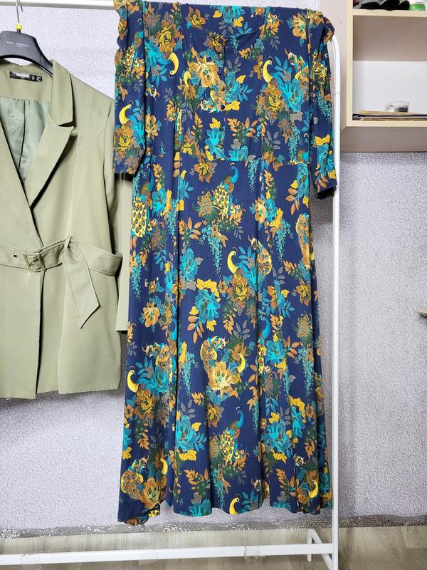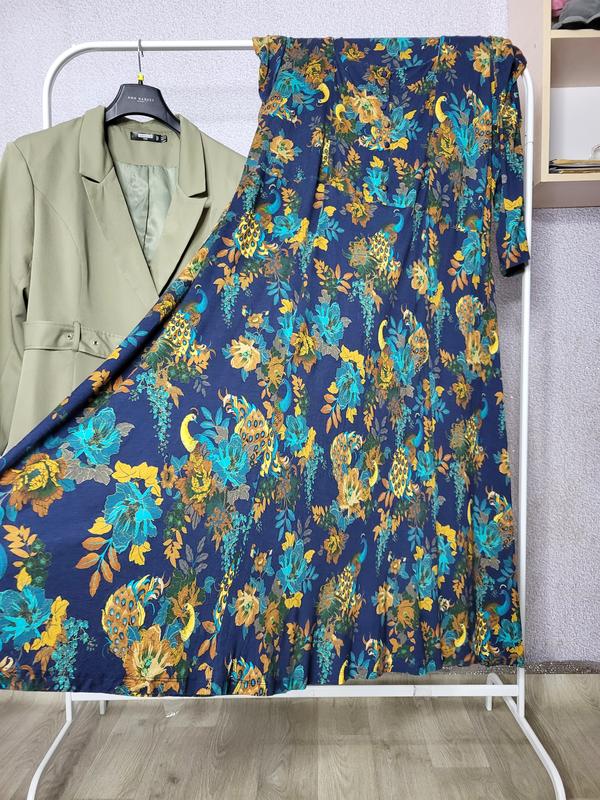 Сукня з віскози Стан: нового Вказаний розмір: 28 ПОГ: 70 см(потягнеться до напівобхвата 86 см)ПОТ: 62 см(потягнеться до напівобхвата 77 см)ПОБ: 74 см(потягнеться до напівобхвата 90 см)Довжина: 138 смДовжина рукава від шиї: 60 см