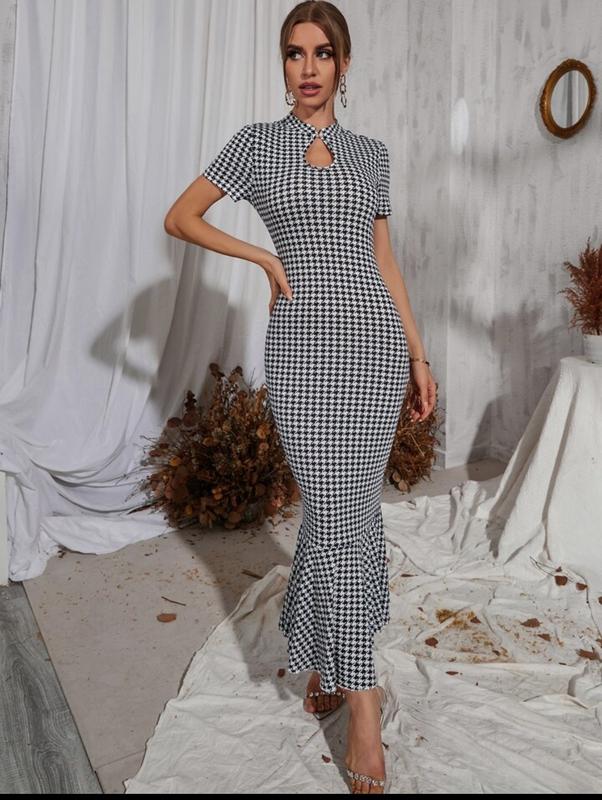 Нова. Бренд Shien. Розмір по барці L. Гарний принт в гусячу лапку.(синьо-білого кольору ). Склад 94%поліестер, 6% спандекс. Довжина 122смПлечі 34смРукав 26смПОГ 41смПОТ39смПОС46см