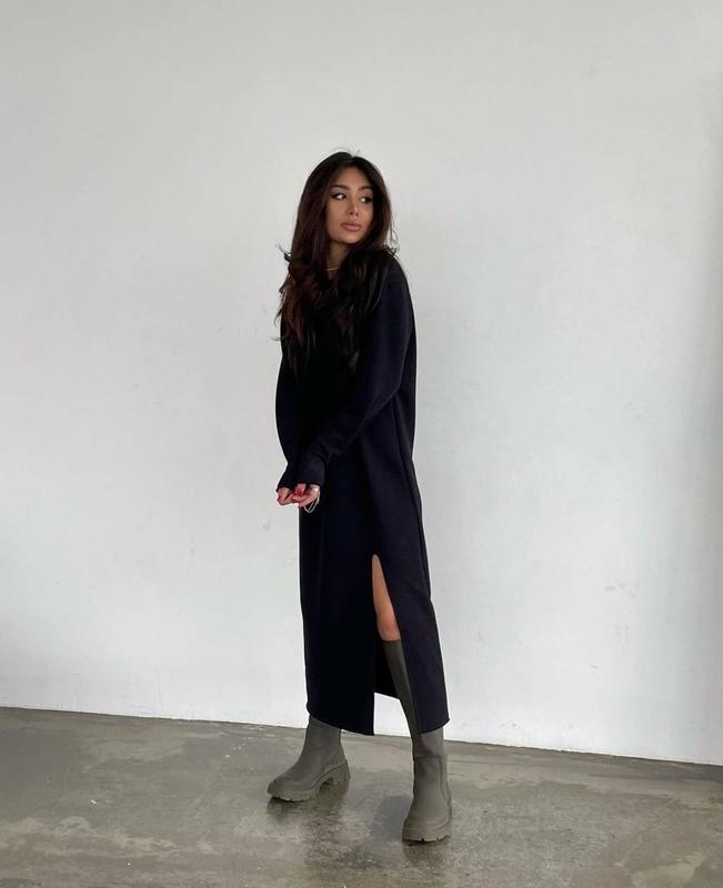 Сукня оверсайз ангорова тепла базова довга максі з вирізом плаття на довгий рукав вільне т...