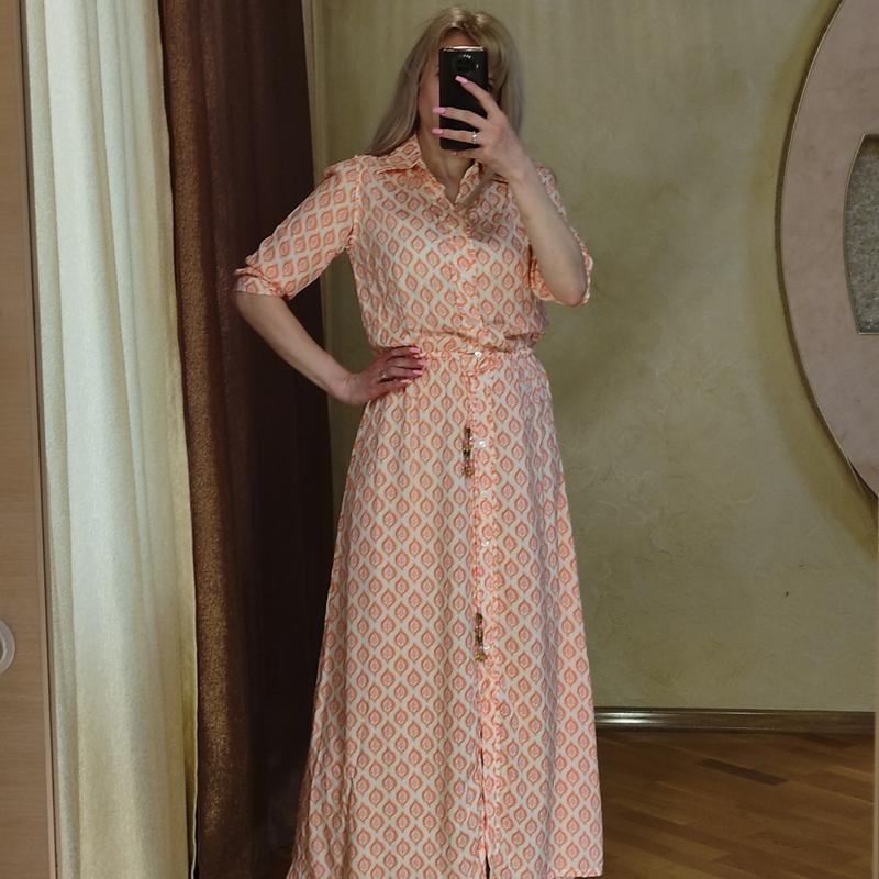 Літня сукня-сорочка максі Розмір вказаний S Підійде на S-M ПОГ - 46-48, ПОТ - 32, тягнеться до 39, ПОБ - вільно, у розкладеному вигляді 61. Довжина 138. 100% віскоза Легка літня тканина, не просвічує, чудова якість. У цій сукні ви почуватимете себе легко та комфортно і водночас виглядатимете яскраво і неповторно 😉