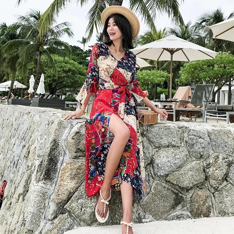 Новая летняя винтажная гонконгская юбка с цветочным принтом, этническая пляжная шифоновая длинная юбка с v-образным вырезом и свободной талией Bell Sve. Розмір М