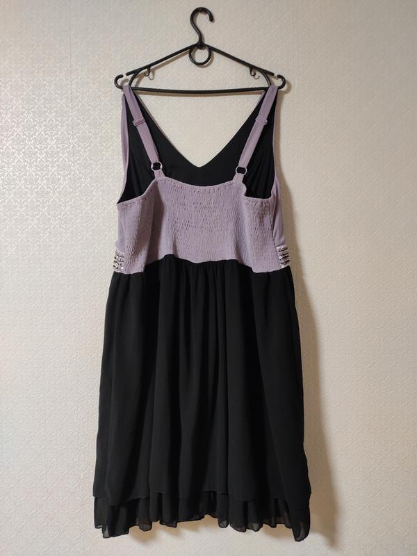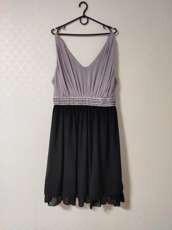 Прекрасне літнє плаття. Стан нового! Не носилося. Матеріал легкий шифон, не просвічує, є підкладка. Верх красивого лавандового кольору, пасок розшитий бісером та паєтками. По спинці тканина зібрана резиночками, що дозволить красиво підкреслити бюст. Розмір вказаний L, альо краще орієнтуватися за вимірами. Довжина 105 (можна відкоригувати бретелями) ПОГ 50-65 ПІТ 50-57 (там де пасок) ПОБІДИ 80 Обміну та повернення немає. Без торгу. Передплата 100%
