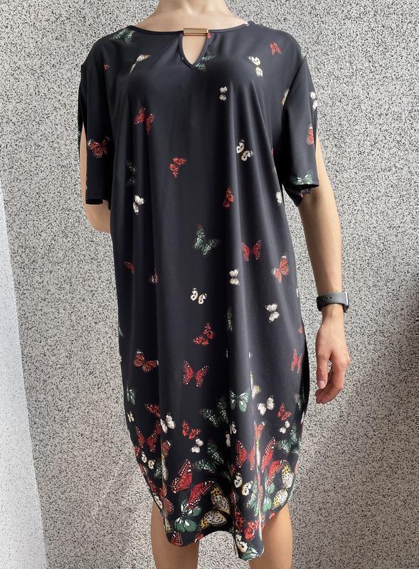 Платье с бабочками, метеликами чорне f&f, черное платье в разноцветный принт.