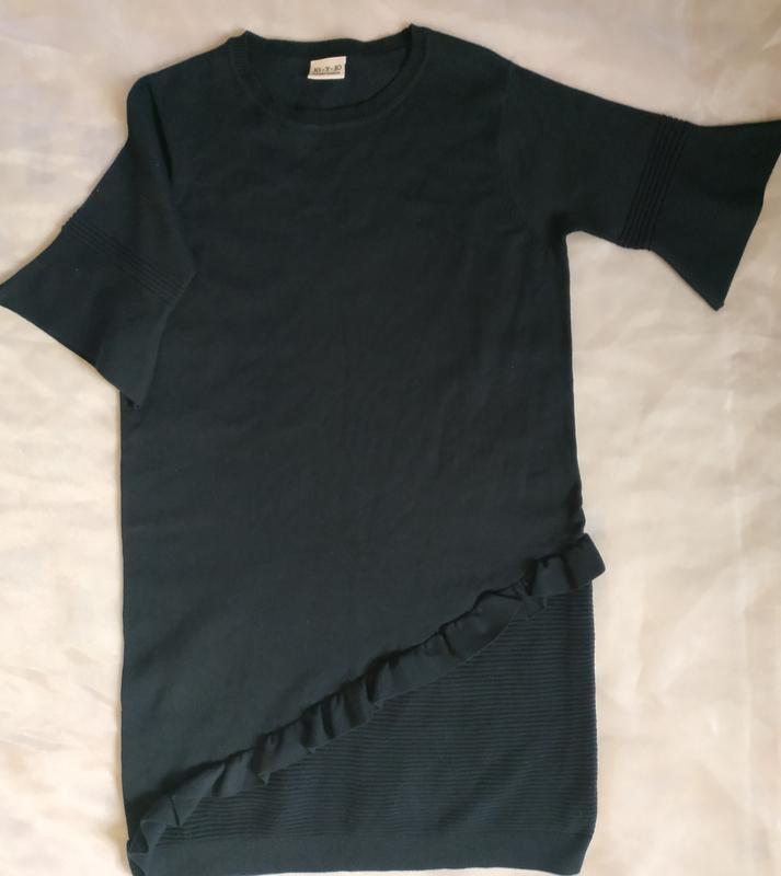 В’язане тепле трикотажне плаття сукня синього кольору прямого силуету
