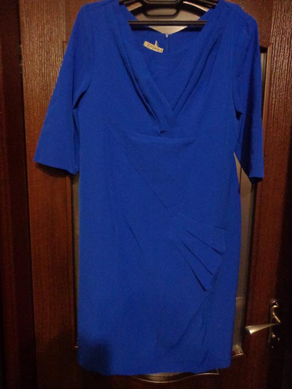 Елегантне плаття, яке підкреслить чарівність і жіночність вашої фігури. Модель вдало драпірує лінію грудей і стегон. Плавність ліній робить ваш силует стрункішим і крихкішими. Тканина: костюмна тканина. 56 розмір: довжина 105 см, ПОГ 56 див.,ВІД 55 див., ПОБІДИ 62 див.