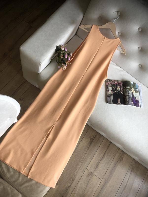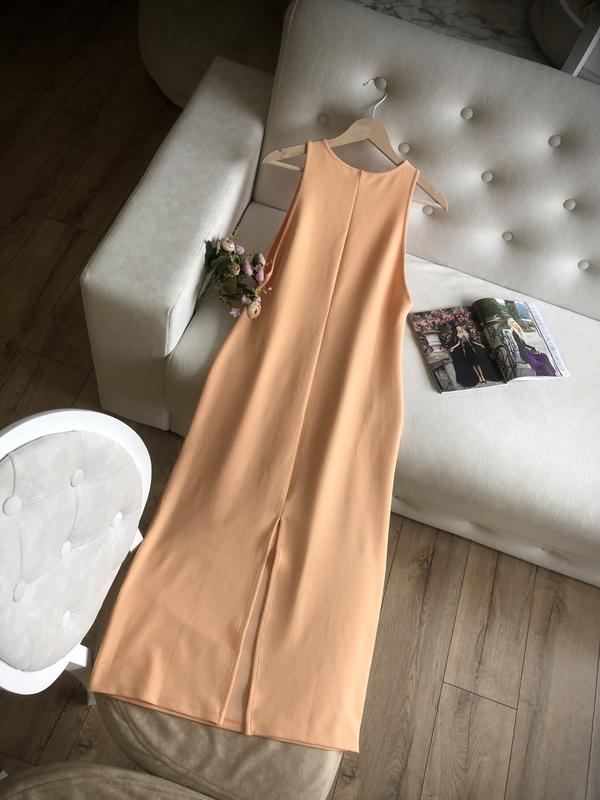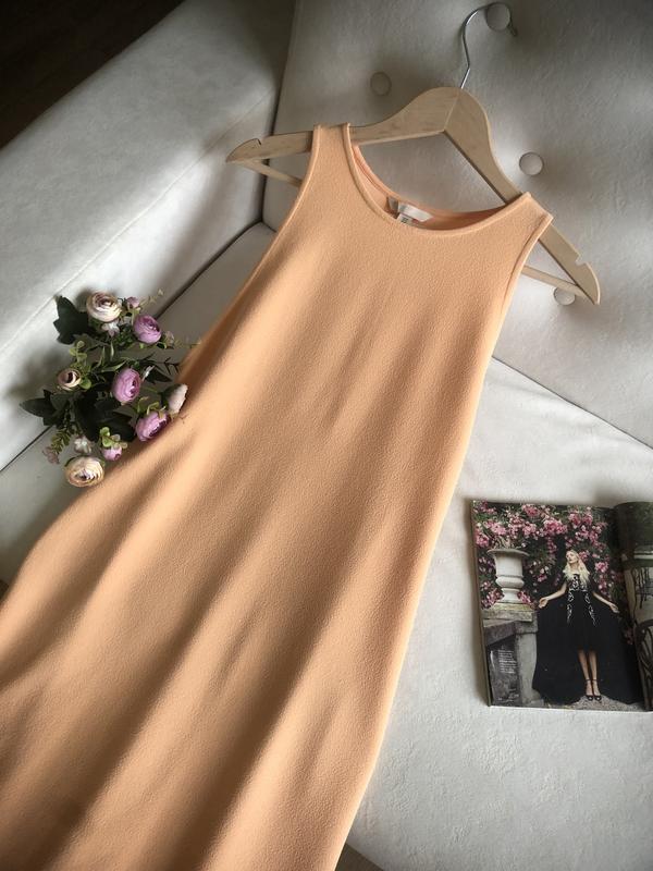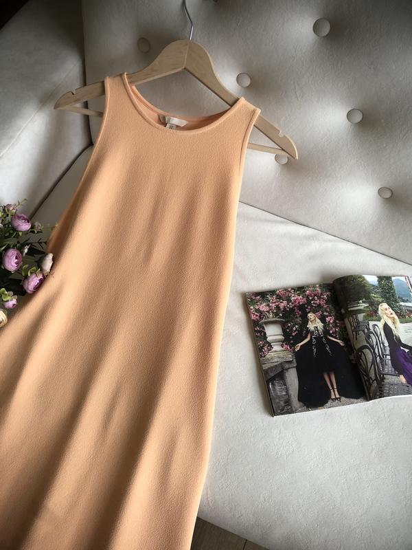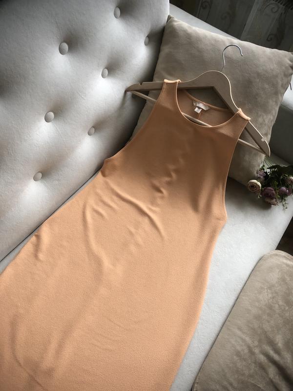 Персикове плаття довжини міді бренду H&M.Дуже гарно сидить по фігурі.Приховує недоліки.Розмір по бірці М.Заміри:1/2 ОГ 42-481/2 ОТ 45-501/2 ОБ 49-54Довжина 123