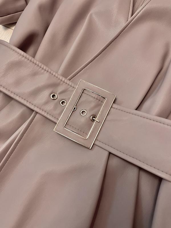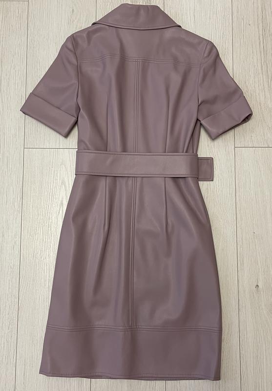 Стильна сукня на запах красивого бузкового кольору. В реальності колір більш світліший.Стан нової.З м‘якенької еко-шкіри на замшевій підкладці.Підійде на розмір S та M за рахунок крою.Пересилаю тільки Новою поштою по повній передплаті.
