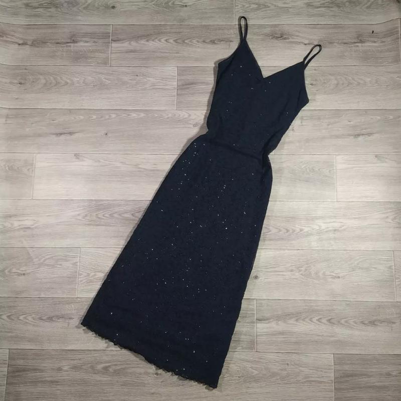 Легка чорна сукня міді по фігури з блискітками