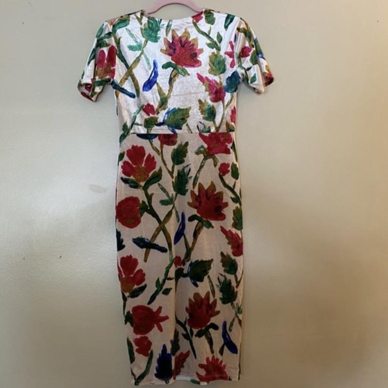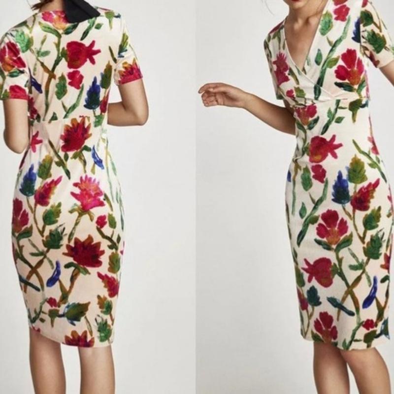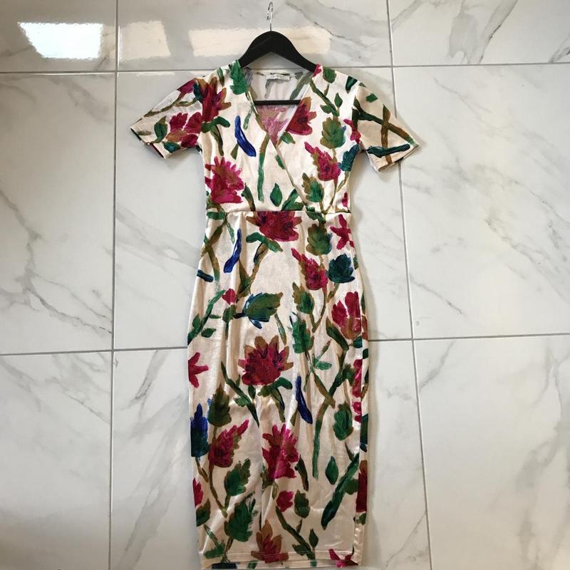 Платье вельветовое от Zara в красивый цветочный принт с глубоким декольте. Размер С. Надевалось один раз, состояние нового