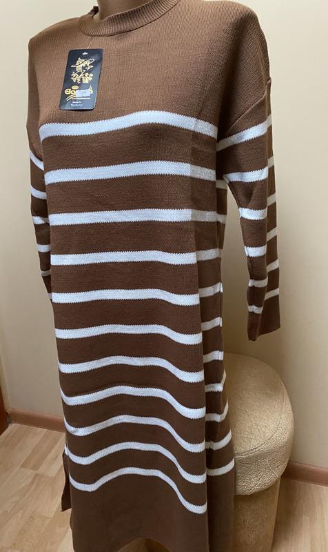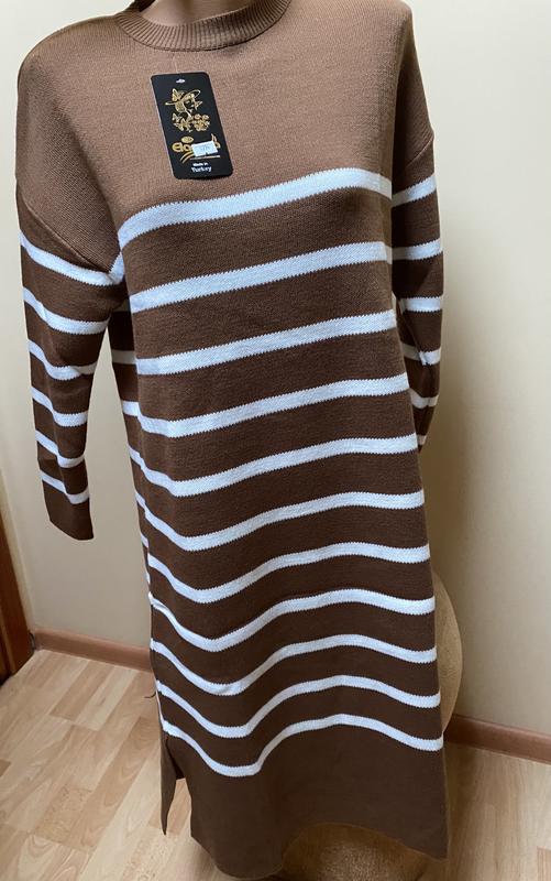 Шоколаднк плаття в білу полоску з розпорками по боках😍