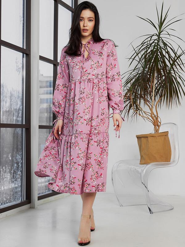 ВІЛЬНА СУКНЯ В КВІТЧАСТИЙ ПРИНТ З ЗАВ'ЯЗКАМИ 🏵️