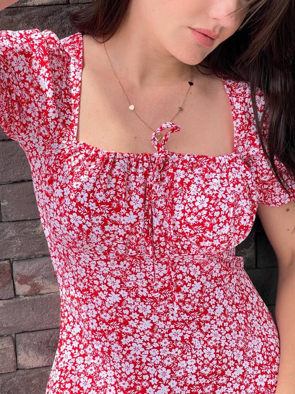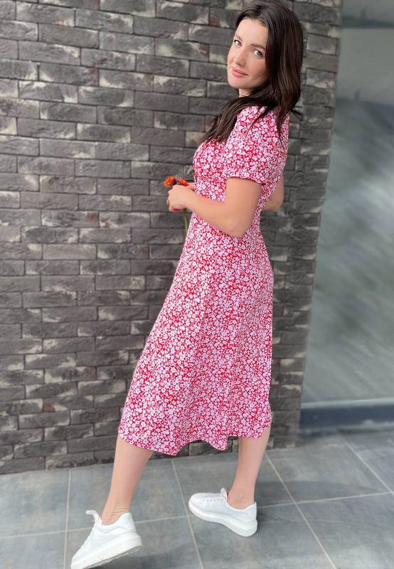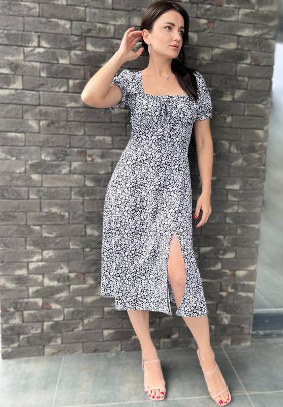 Тканина софтКолір червоний, блакитний, чорнийРозмір 42-44,46-48,50-52Сукня приталена з розрізом, ззаду потайна блискавка. Рукави на резинці, спереду на грудях плаття затягується