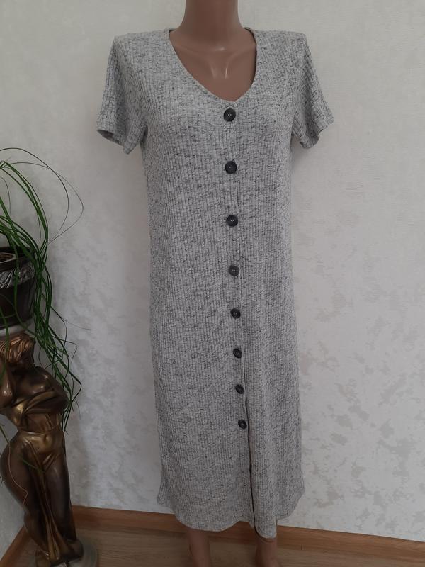 Відмінна сукня в рубчик t міді.Стан нової речі .Гарно тягнеться .Указаний М, але підійде і на L., XLВиміри:ПП 43ПГ 48ПТ 48ПБ 56ДОВЖИНА 114РУКАВ 17