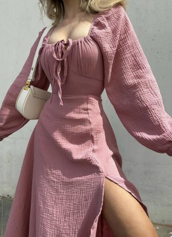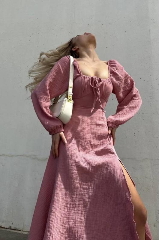 Сукня довжини міді у рожевому кольорі Стан: 5+(вдягалась один раз)Розмір 42/44Підійде на параметри:ОГ: 80-95ОТ: 58-75На спинці є корсет за допомогою якого можна більше підкреслити фігуру