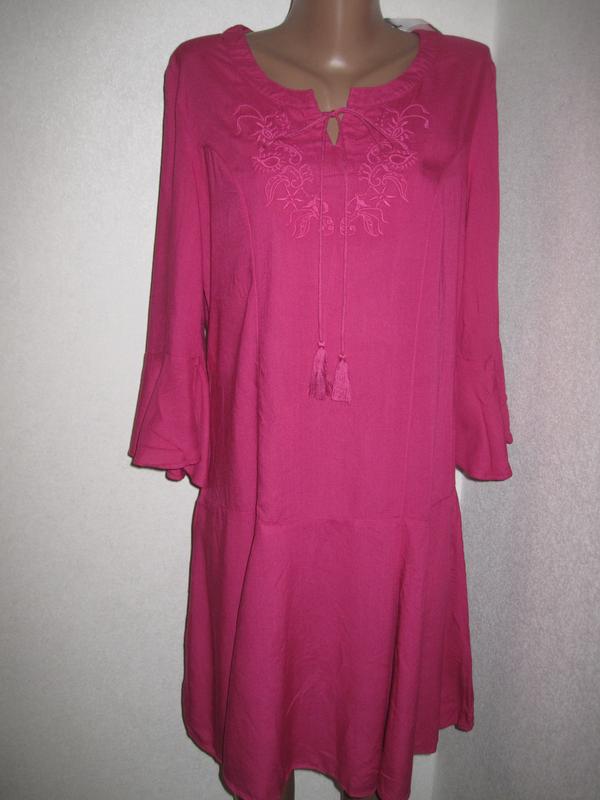 Вискозное платье фуксия TU р-р12, вискоза, впереди вышивка, ПОГ50. ПОТ46, ПОБ50. рукав 50. длина 95. новое с ценником. 330грн