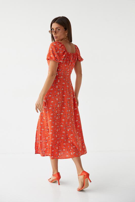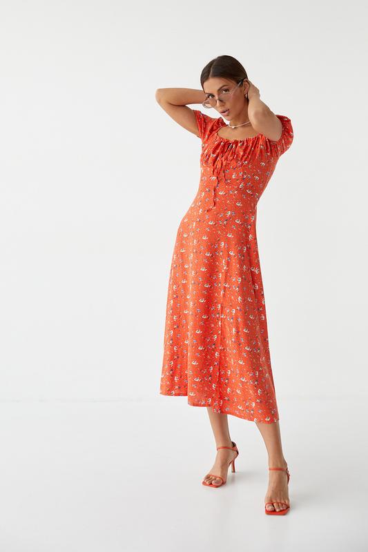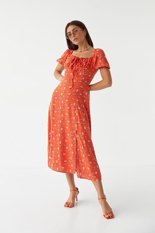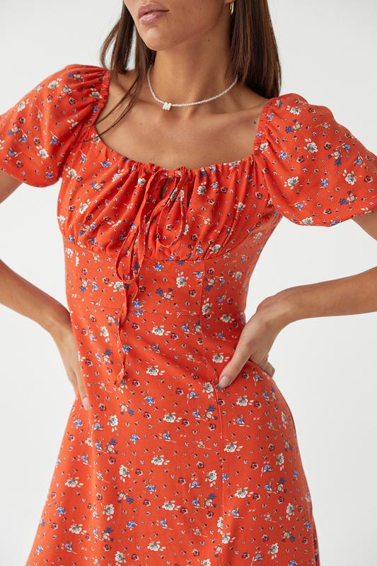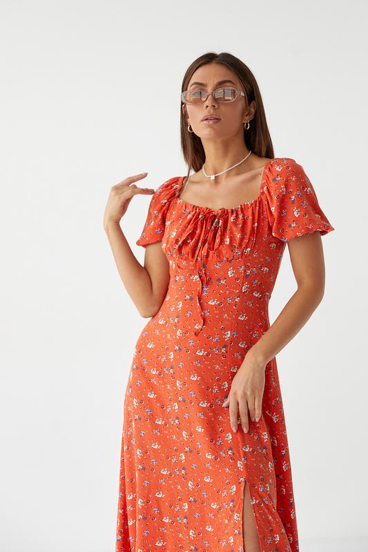Ця літня сукня гарно підкреслює жіночу фігуру завдяки відрізній талії (без