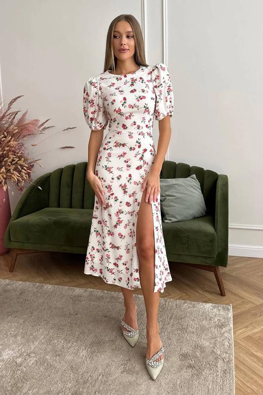 ▫Ідеальна сукня твого літа🫣 Довжина міді, квітковий принт, рукавчики фонартки і розріз - в ній продумано все до деталей😍 А також ідеальні лекала, які будуть моделювати твою фігуру ☺️