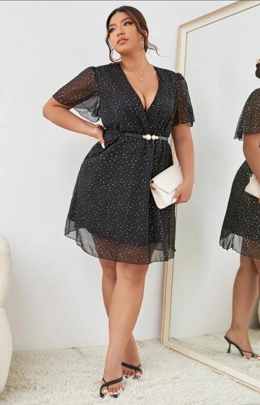 Нове ошатне стильне плаття міді зі 100% шовку з паєтками в гірчичному кольорі, розмір хл