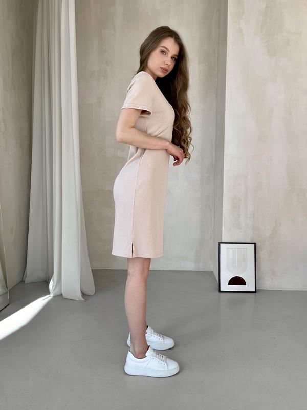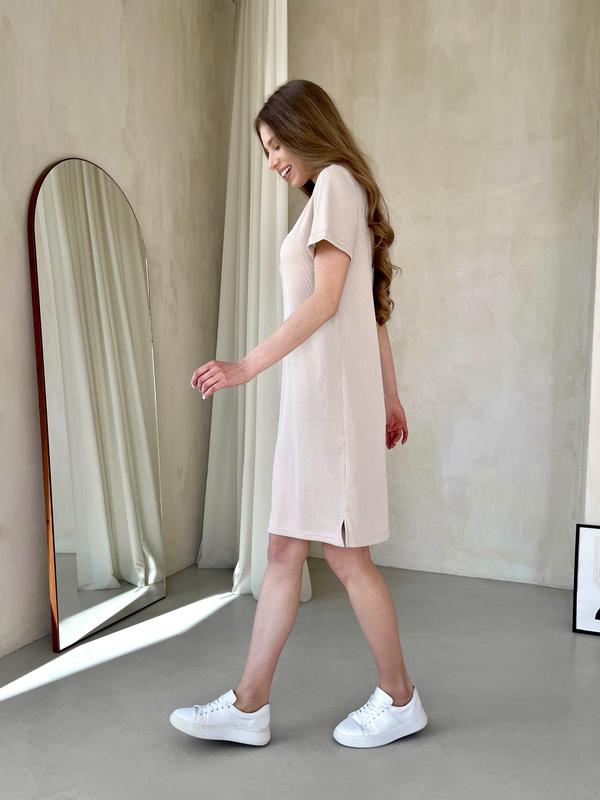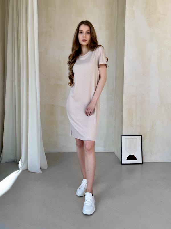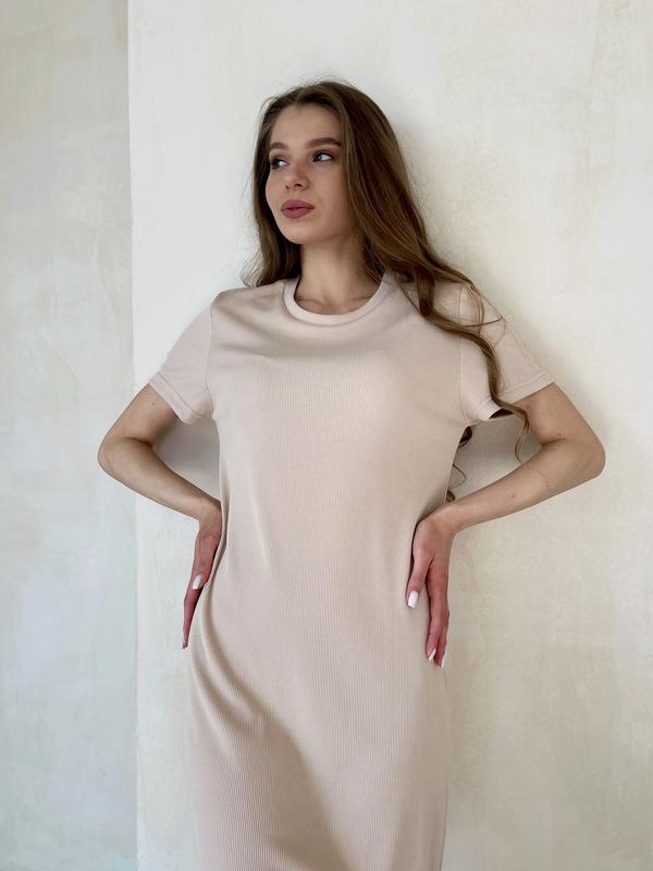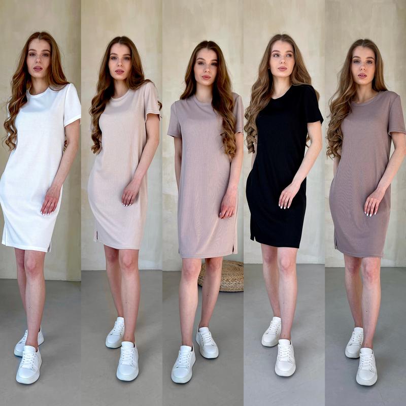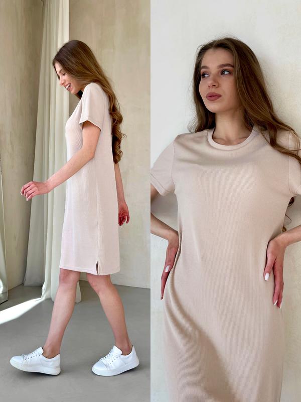 Жіноча сукня-футболка в рубчик з бічними маленькими розрізами. Сукня не обтягує,натуральний легкий матеріал. Власне виробництво-якісний пошив👍.