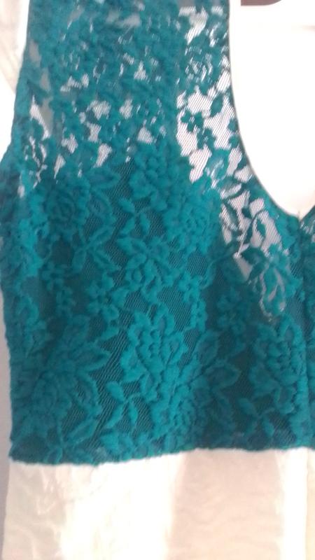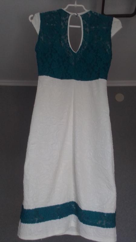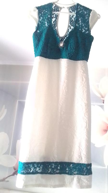 Плаття міді з коротким рукавом. Верх сіточка. На грудях підкладка. Є глибокий виріз. Довжина 93