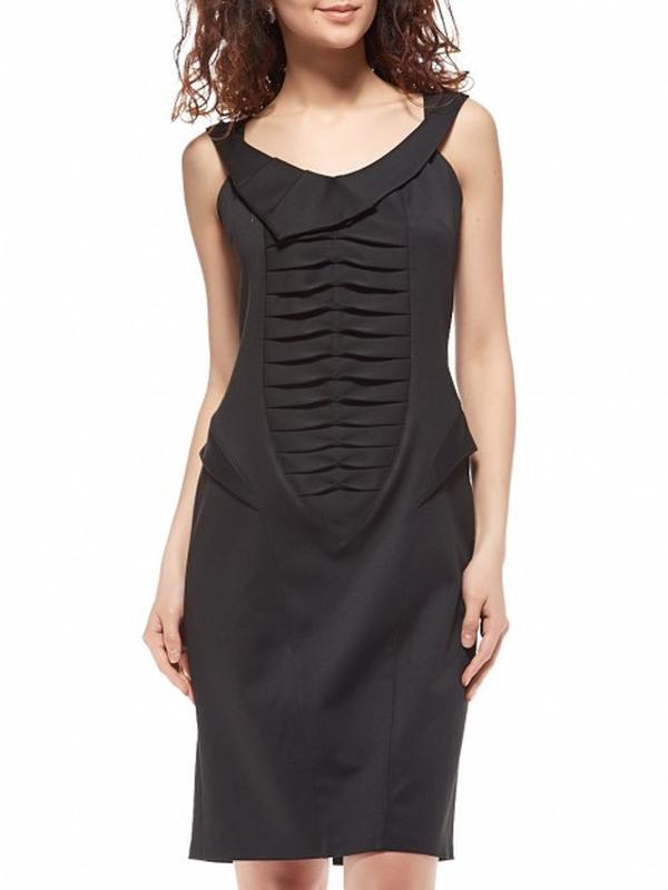 бретель. Драпірування спереду плаття. Довжина до середини коліна. У бічних