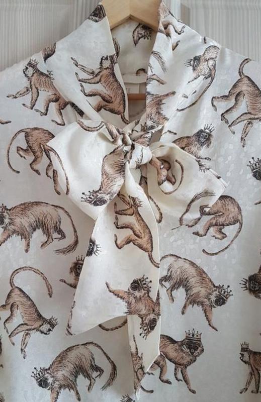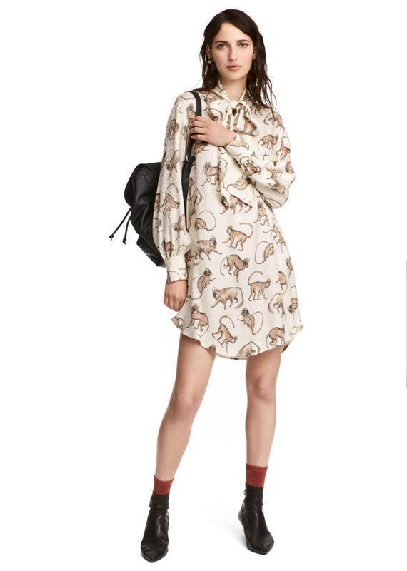Стильне плаття h&m лонгслив з мавпочками. Розмір у наявності 38. Лінія плеча приспущена, рукави з манжетами на ґудзику. На горловині можна зав'язати бант.